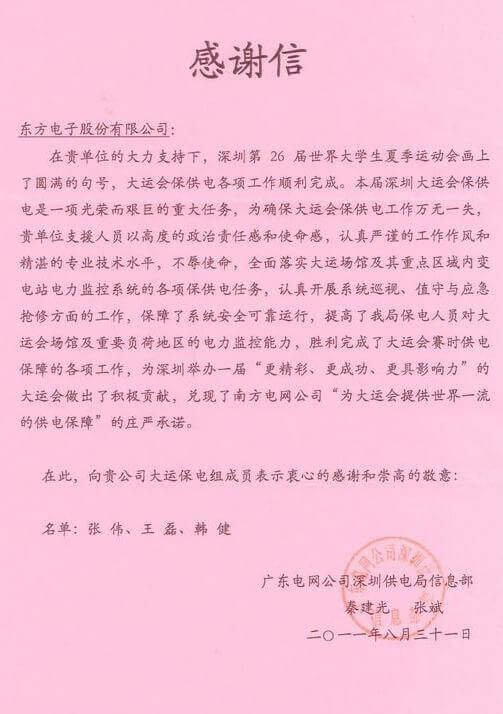 8月23日,世界大学生运动会在深圳圆满落幕,深圳前海动产时代物业管理有限公司作为大运会唯一保电企业见证了世界大学生体育运动的蓬勃发展。深圳前海动产时代物业管理有限公司技术中心系统部与工程部坚守“忠于职守,全力以赴,誓保大运电网安全”的信念,联手实现了大运保供电期间系统零故障、零缺陷的目标。